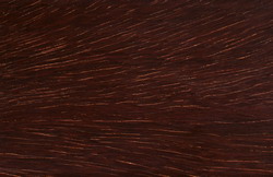 | Houtbeschrijving | Het kernhout is vers roodbruin en verkleurt naar donkerrood tot chocoladebruin, of soms tot violetachtig donker roodbruin. Azobé heeft opvallende wit tot geel gekleurde inhoudsstoffen in de vaten. De structuur is in het algemeen vrij regelmatig. Door de kruisdradigheid zijn op het kwartierse vlak afwisselend lichte en donkere banen te zien. Het dosse vlak vertoont een vaag streepdessin, veroorzaakt door het kleurverschil tussen vezel en parenchymweefsel. Bij vers azobé komt tussen het kernhout en spint vaak een 80-120 mm brede ring lichter gekleurd overgangshout voor. Droog krijgt dit nog niet volledig verkernde hout dezelfde kleur als het kernhout. Dit overgangshout is minder duurzaam dan het overige kernhout. Het tot 50 mm brede spint is scherp afgetekend en heeft een duidelijk lichtere kleur dan het kernhout. |